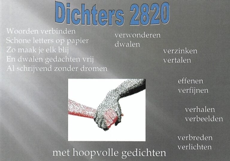 Dichters2820 ontstond in 2015, toen de cultuurdienst van Bonheiden een oproep voor dichterstalent lanceerde. Dat resulteerde in raamgedichten, waarvan sommige vandaag nog altijd ophangen, een boekje vorig jaar en zes permanente gedichten in het straatbeeld. Nu stellen de dertien dichters hun eerste eigen werk voor: 50 van bij ons (door mensen van bij ons).