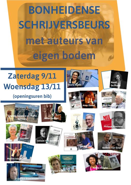 Schrijvers van Bonheiden zelf ontmoet je tijdens de Bonheidense schrijversbeurs op zaterdag 9 en woensdag 13 november 2019.